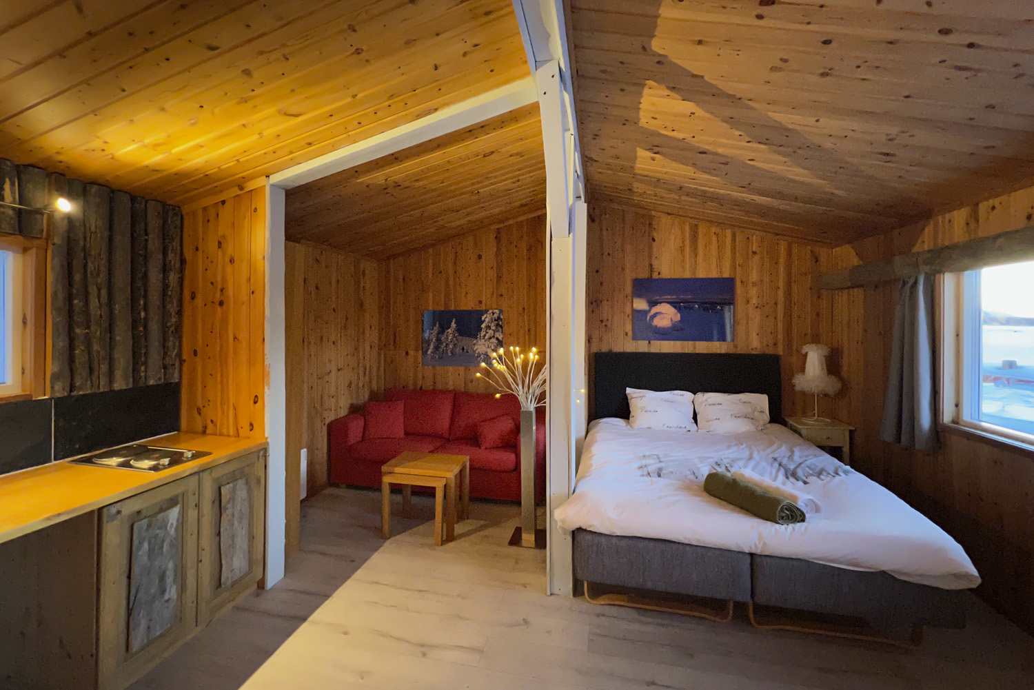 Les 8 chalets disponibles pour nos hôtes ont tous la même taille et la même présentation extérieure. Ce sont des chalets de 30m2 en bois typiquement suédois, et ils sont tous idéalement situés au bord du lac pour avoir une magnifique vue sur la nature environnante et sur les aurores boréales pendant la saison. Ce sont des chalets indépendants du bâtiment principal et les uns envers les autres, cela n'a donc rien à voir avec une chambre d'hôtel. Nous disposons de 3 types d'aménagements intérieurs pour nos chalets.